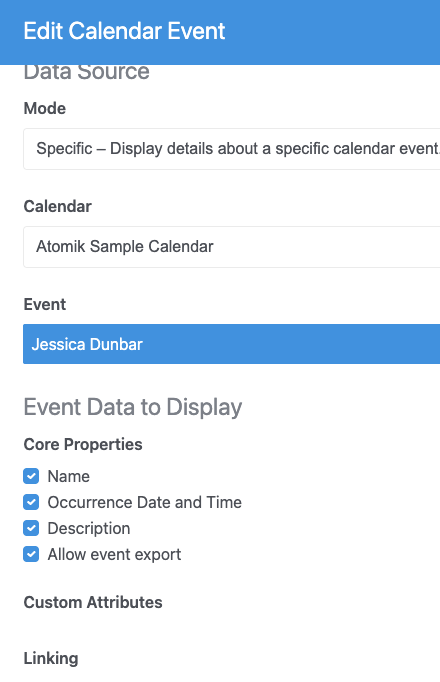 When I try to add the calendar, I get the error “You must choose a valid calendar event attribute to store the event within.” The “Calendar Event Attribute” drop-down does not have any values in it. I have created some Calendar Event Attributes using the Dashboard→Calendar & Events→Attributes, but these do not show up in the list.