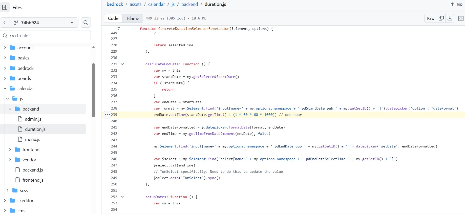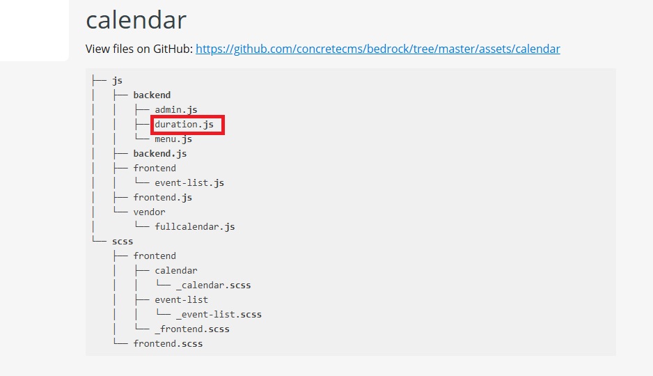 Is it “fullcalendar.js”, “duration.php”, or a different file?