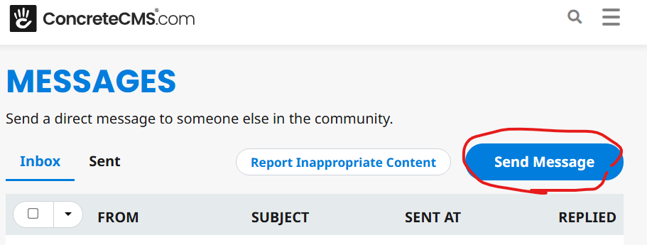 However when i go to the messages page i aee the inbox and the sent tabs but nowhere can i see a button to start a message.