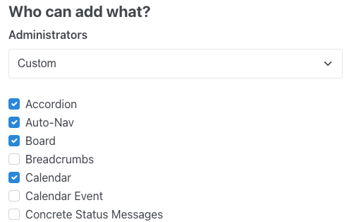 Currently, I am struggling with the block permissions. Ideally, I would want to allow certain user groups to add a certain selection of blocks.