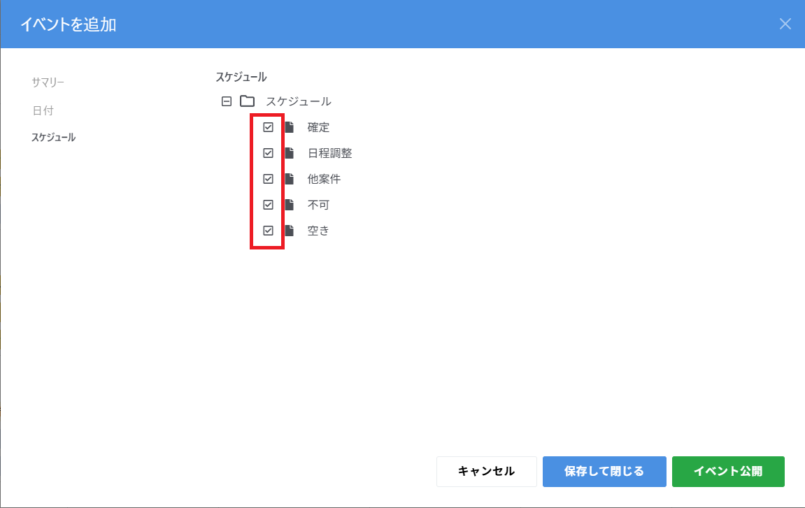 When adding an event to the calendar, I set the event category and change the color, but as you can see in the image, when I select the event category (topic), all of them are checked.
