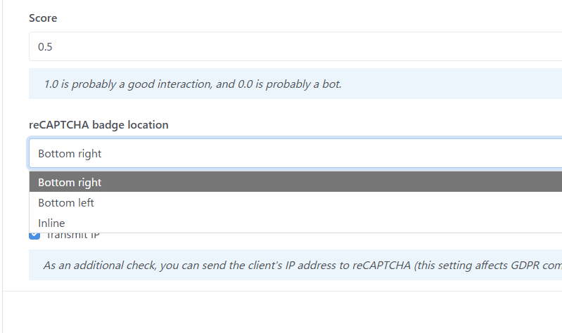 In ConcreteCMS 9.4.8, with reCAPTCHA V3, the reCAPTCHA mark is cut off and half-displayed when using Bottom left and inline.